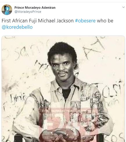 Twitter User Calls Obesere The Original African Fuji Michael Jackson Not Korede Bello 666 Jams666 Jams Mobile Version