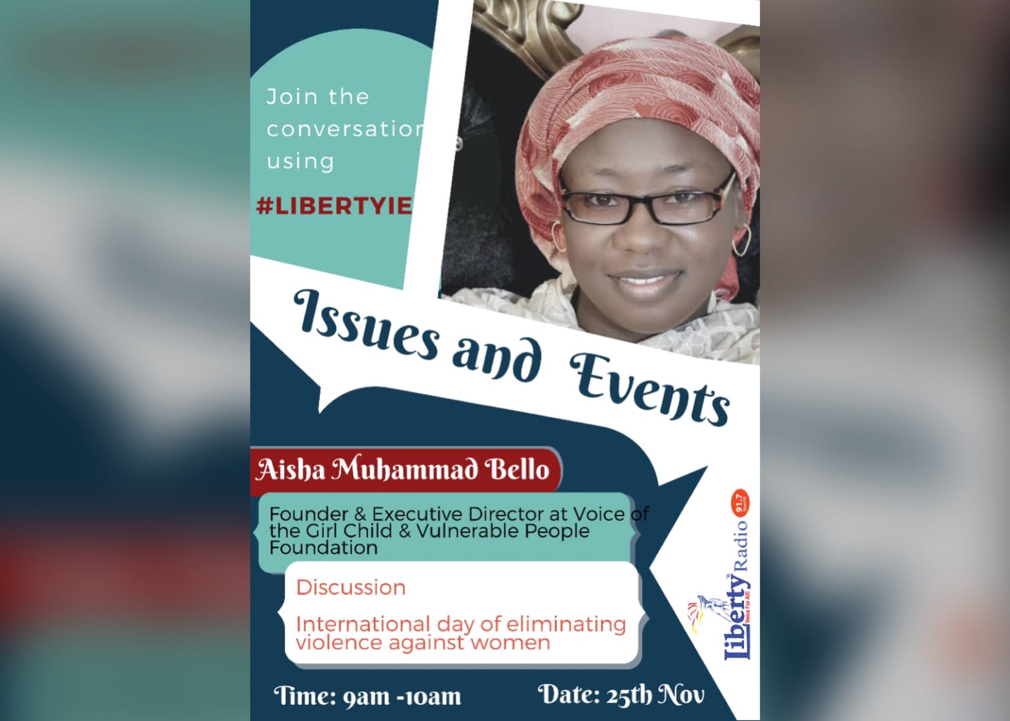 Liberty Radio 91 7 Fm Kaduna On Twitter Today On Libertyie Tunji917 Discusses International Day For Eliminating Violenceagainstwomen With Mrs Aisha Bello Tune In Send Your Questions Using Libertyie Liberty917 Genderbasedviolenceawareness