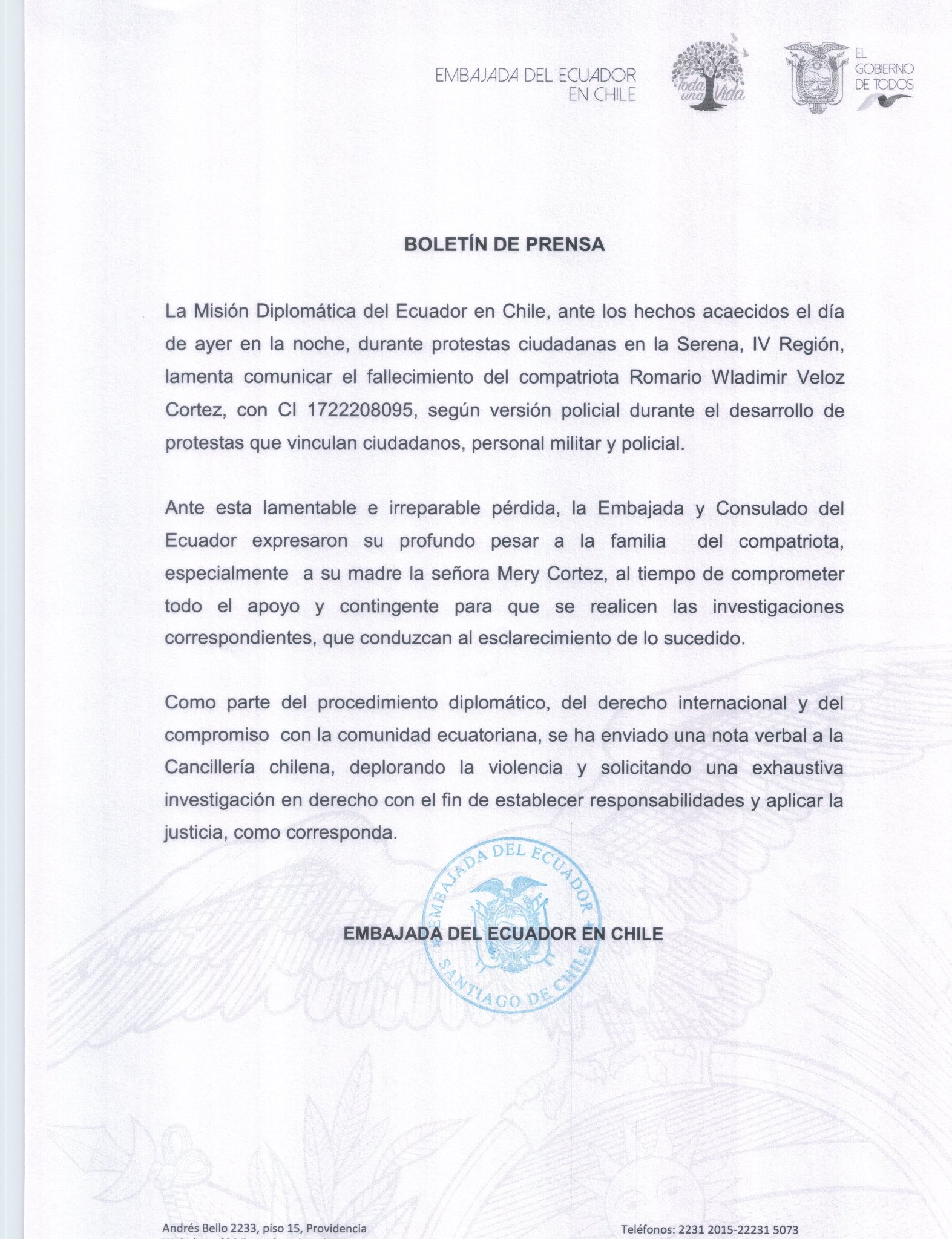 Embajada Del Ecuador En Chile On Twitter Con Mucha Pena Le Informamos A La Comunidad Lo Siguiente