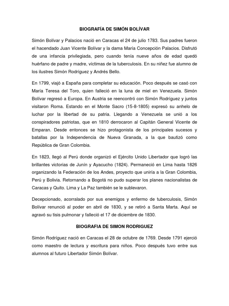 Biografia De Simon Rodriguez Historia Del Nuevo Mundo