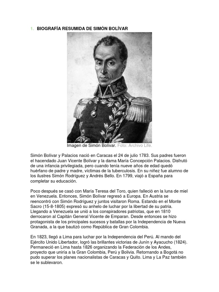 Biografia Resumida De Simon Bolivar Guerra De La Era Industrial Conflictos Del Segundo Milenio