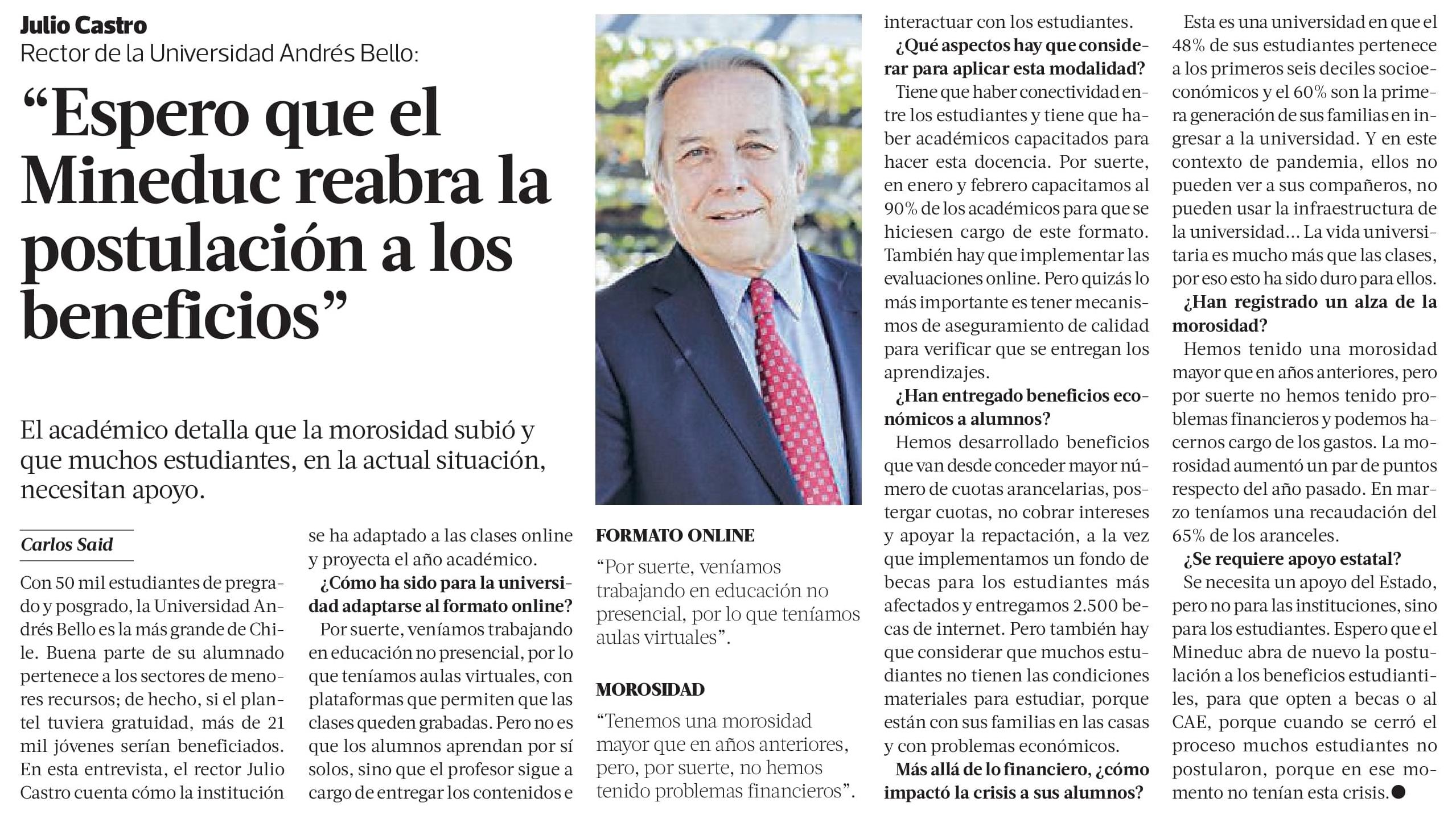 Julio Castro Rector De La Universidad Andres Bello Espero Que El Mineduc Abra De Nuevo La Postulacion A Los Beneficios Estudiantiles La Tercera