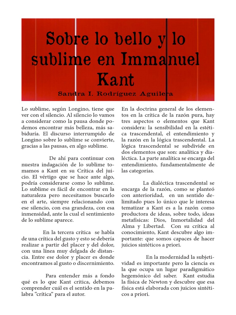 Sobre Lo Bello Y Lo Sublime En Immanuel Kant Immanuel Kant A Priori Y A Posteriori