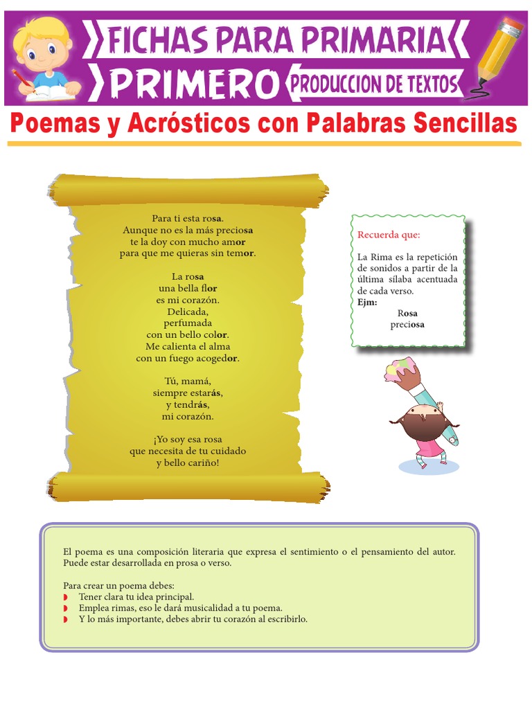 Poemas Y Acrosticos Con Palabras Sencillas Para Primer Grado De Primaria Pdf Poesia